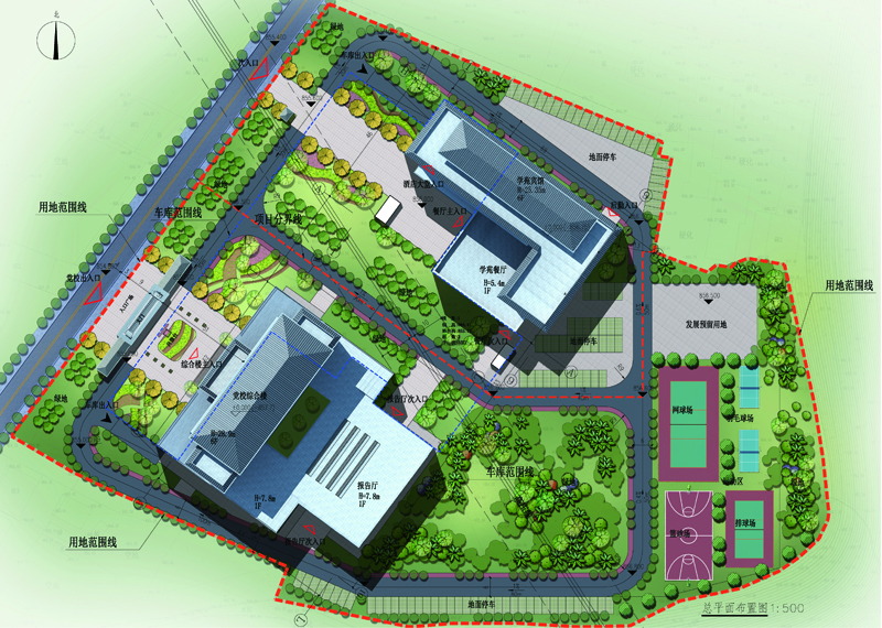 黨校新校區(qū)項(xiàng)目選址于桃花源街道東流口村4組(小地名:五家灣),距離現(xiàn)黨校有11.8公里,項(xiàng)目用地面積為48.5畝。總建筑面積:25613.00m2(其中綜合樓建筑面積:11871.00m2,學(xué)苑賓館建筑面積:13742.00m2),設(shè)計(jì)綜合樓1棟、學(xué)苑賓館1棟、地下車庫(kù)、大門,能滿足培訓(xùn)、辦公、會(huì)議、就餐和住宿等功能。