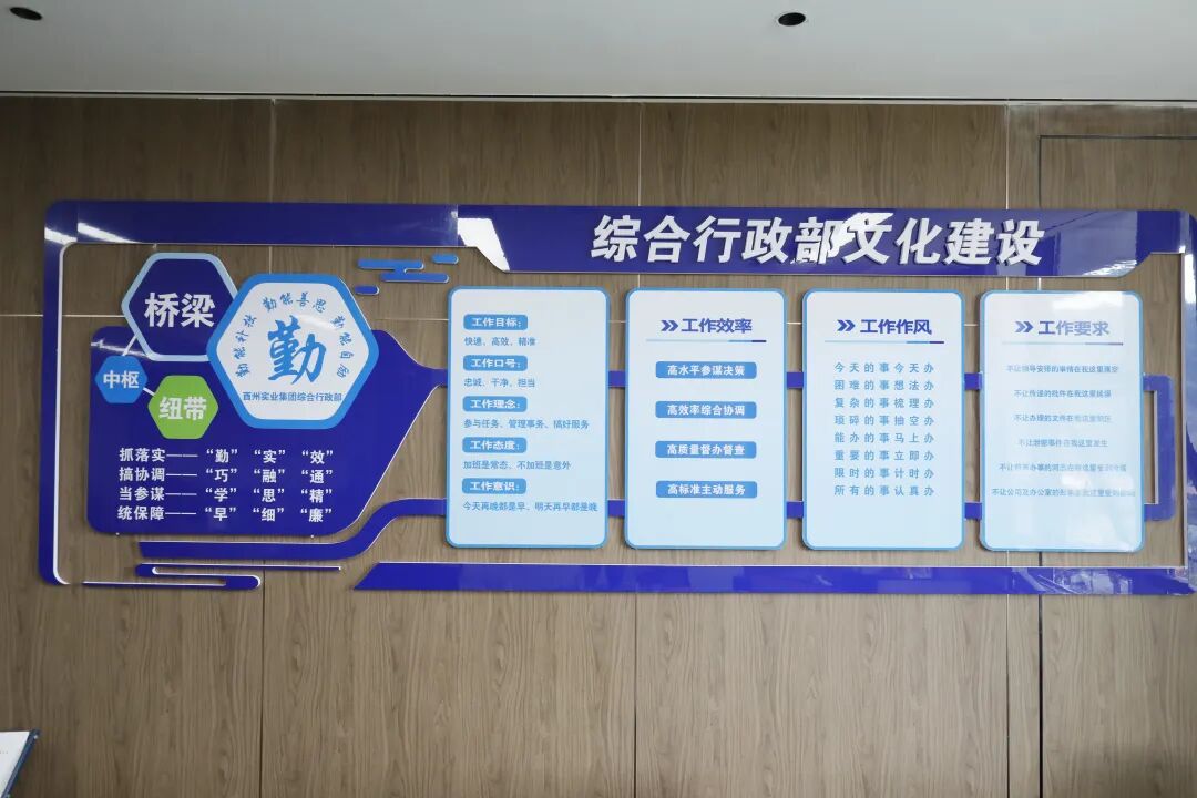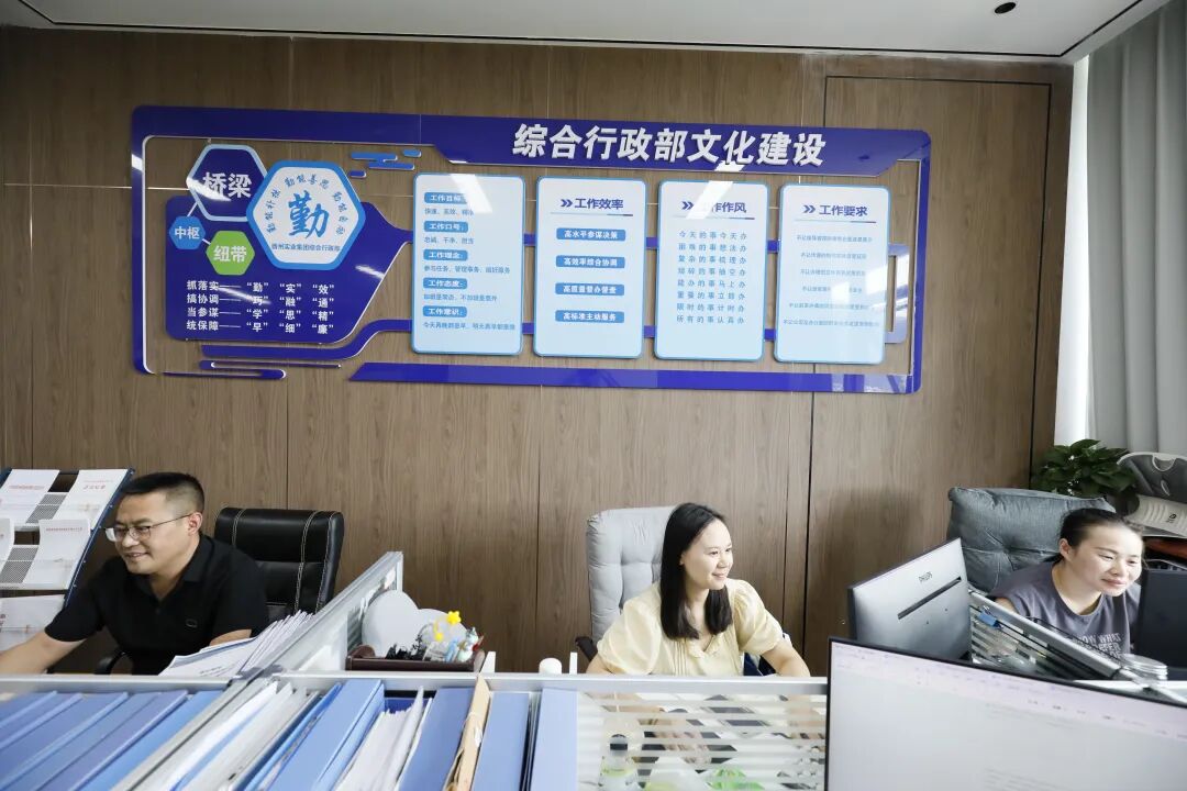“勤能補(bǔ)拙、勤能善思、勤能自勵(lì)”。走進(jìn)集團(tuán)綜合行政部辦公區(qū),首先映入眼簾的便是這面嶄新的文化墻。集團(tuán)總部搬遷桃花源新城第一個(gè)月,綜合行政部著眼“筑牢體系、豐富載體、融合發(fā)展”三個(gè)維度率先打響“文化先行”陣地建設(shè)。從“勤能補(bǔ)拙”到“中樞紐帶”,從“辦公桌文化”到“部室榮譽(yù)”,一塊塊高亮文化建設(shè)矩陣無(wú)縫覆蓋,成為綜合行政部最亮眼的“打卡點(diǎn)”。文化不是口號(hào)是執(zhí)行力;“文化上墻”更不是簡(jiǎn)單的標(biāo)語(yǔ)懸掛,而是把綜合行政部的主責(zé)主業(yè)轉(zhuǎn)譯為可視語(yǔ)言;把可視語(yǔ)言轉(zhuǎn)化為實(shí)際行動(dòng);把實(shí)際行動(dòng)轉(zhuǎn)化為工作的高質(zhì)高效。