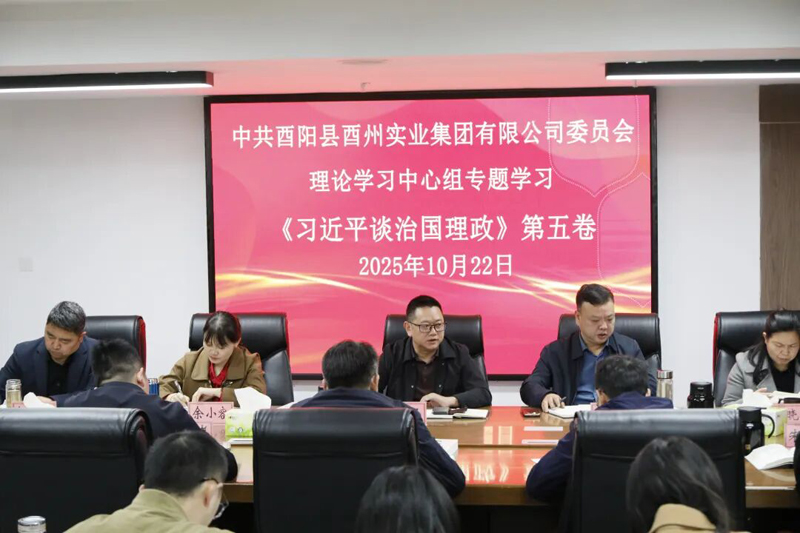10月22日,酉州實(shí)業(yè)集團(tuán)黨委召開理論學(xué)習(xí)中心組學(xué)習(xí)會(huì)議。集團(tuán)黨委書記張宗銀主持會(huì)議并講話,黨委成員、班子成員和各部室、子公司負(fù)責(zé)人參加學(xué)習(xí)。會(huì)議專題學(xué)習(xí)《習(xí)近平談治國(guó)理政》第五卷部分章節(jié),深入學(xué)習(xí)領(lǐng)會(huì)習(xí)近平新時(shí)代中國(guó)特色社會(huì)主義思想的世界觀和方法論,進(jìn)一步以黨的創(chuàng)新理論武裝頭腦、指導(dǎo)實(shí)踐、推動(dòng)工作。部分同志圍繞學(xué)習(xí)內(nèi)容并結(jié)合自身工作實(shí)際作了交流發(fā)言。